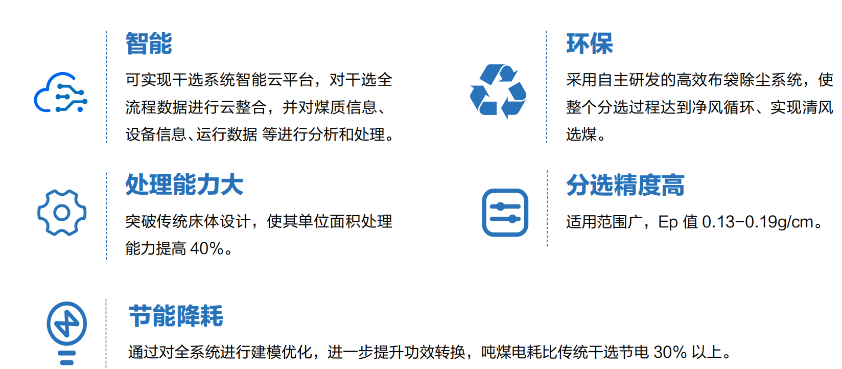 CZM清風(fēng)選煤智能干選機(jī)是由神州集團(tuán)自主研發(fā)推出的具有節(jié)能和大處理能力的煤炭分選設(shè)備。CZM系列智能干選機(jī)在設(shè)計和制造工藝上全新應(yīng)用傳動仿真手段、參數(shù)化設(shè)計振動測試技術(shù)、有限元分析技術(shù),更大程度上保證了整機(jī)的穩(wěn)定性、可靠性和安全性。關(guān)鍵裝備及核心部件均由神州集團(tuán)自行設(shè)計、制造,工藝先進(jìn)質(zhì)量可靠。