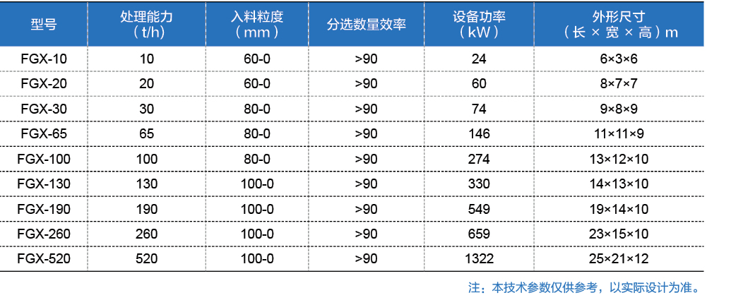 FGX 復合式干法選煤系列產品主要針對動力煤和易泥化煤進行干法排矸,吸取了風力搖床和流化床的優點并采用多種綜合分選原理,使物料在分選床上實現按密度分層,分選效果好。該設備具有結構優化、配置精簡、投資成本低、占地面積少等諸多優點,非常適合短、平、快項目。