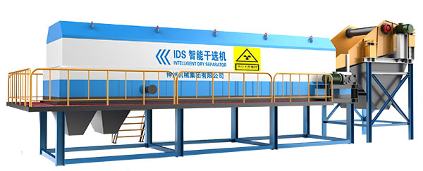 IDS智能干選機是神州集團自主研發的適用于25-300mm 粒級的煤、矸分離的智能分選設備。該設備采用智能識別方法,通過大數據分析,對煤和矸石進行數字化識別,具有分選效率高、運轉平穩,完全智能化,免人工值守等優點。IDS智能干選機是替代大塊原煤人工選矸的理想設備,解決了長期以來困擾我國大粒度煤干法分選的難題,填補了市場上對于大粒度煤智能分選的空白。